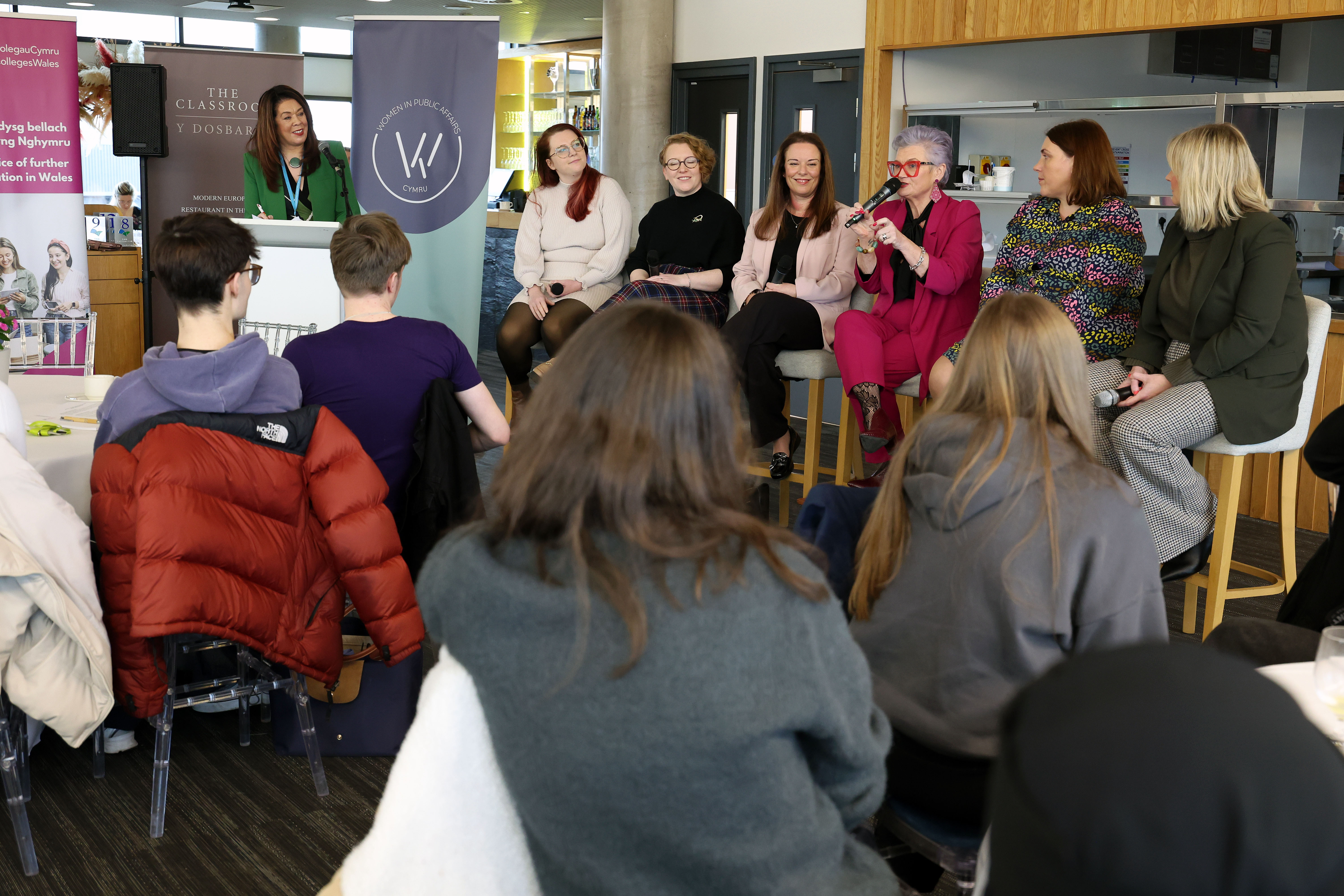 Wedi'i gynnal ym mwyty’r Dosbarth yn y Coleg, daeth y digwyddiad â dysgwyr ynghyd â phanel trawiadol o fentoriaid a rannodd eu teithiau gyrfa bersonol, heriau a chyngor ar arweinyddiaeth, cynrychiolaeth a meithrin hyder.